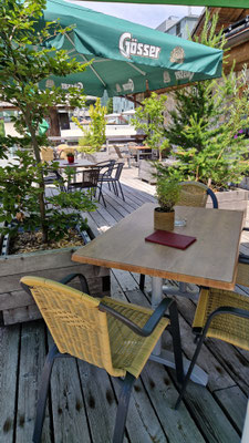 Auf unserer Sonnenterasse bieten wir im Sommer, Getränke und Eisbecher sowie unser beliebtes Kaffee & Kuchen Angebot an.